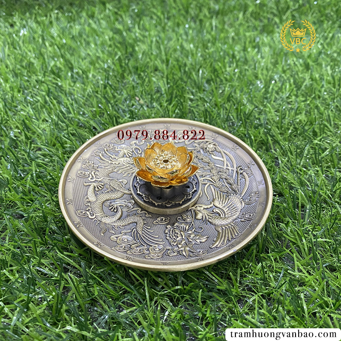 Đế đồng xông trầm hương được thiết kế khá đơn giản,khắc rồng phượng rất đẹp.Sản phẩm cầm đằm tay chắc chắn và rất tiện dụng,có thể dùng với nhang không tăm,nhang vòng hoặc đốt nụ..Hương trầm thơm dịu tạo cảm giác khoan khoái,thanh tịnh cho gia chủ,mang lại lộc tài vượng khí