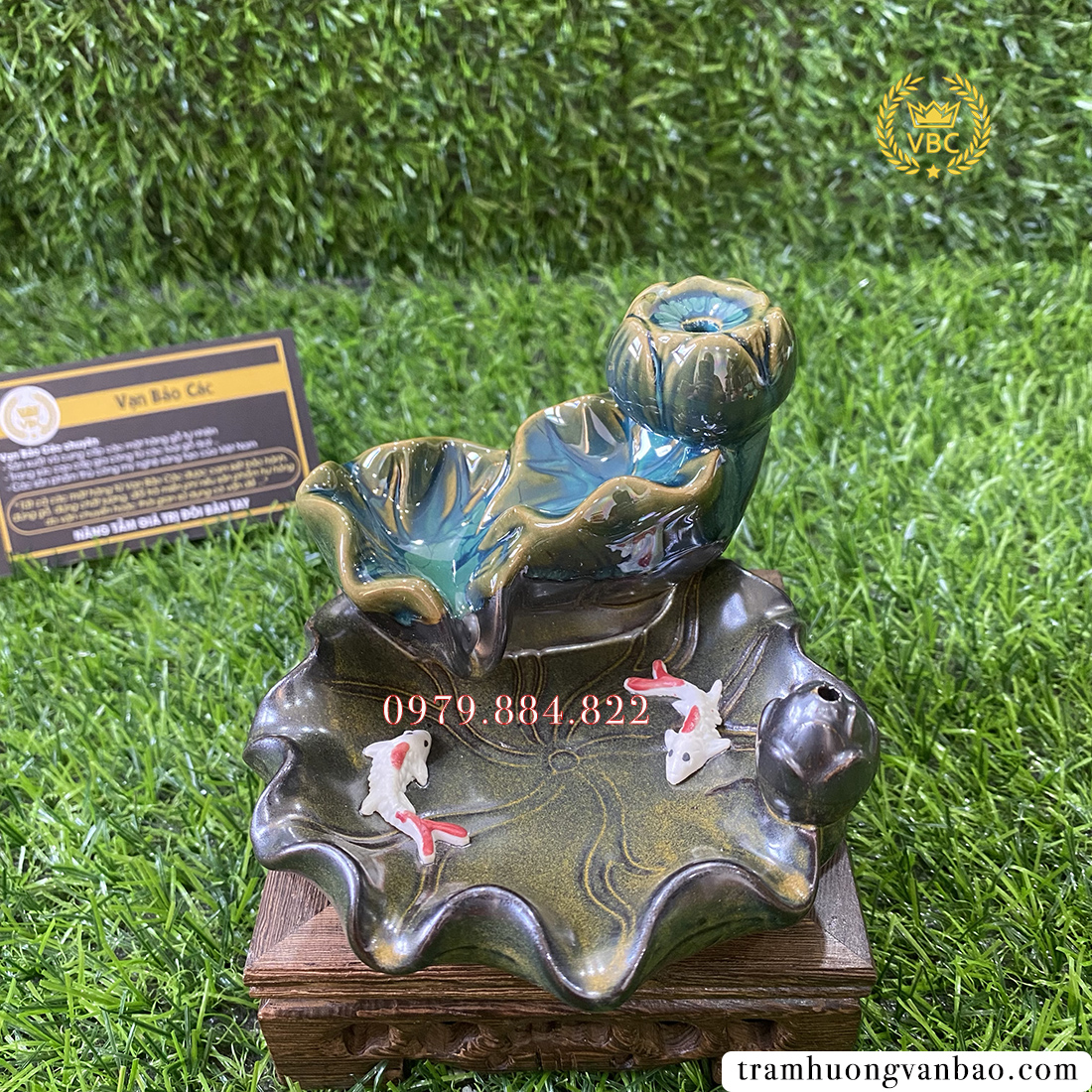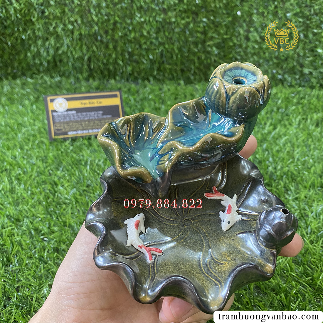 Thác khói trầm hương - Thác đốt trầm nụ bằng gốm, màu xanh Thác được làm bằng gốm, màu sắc, họa tiết tao nhã Kích thước: 10x7,5cm